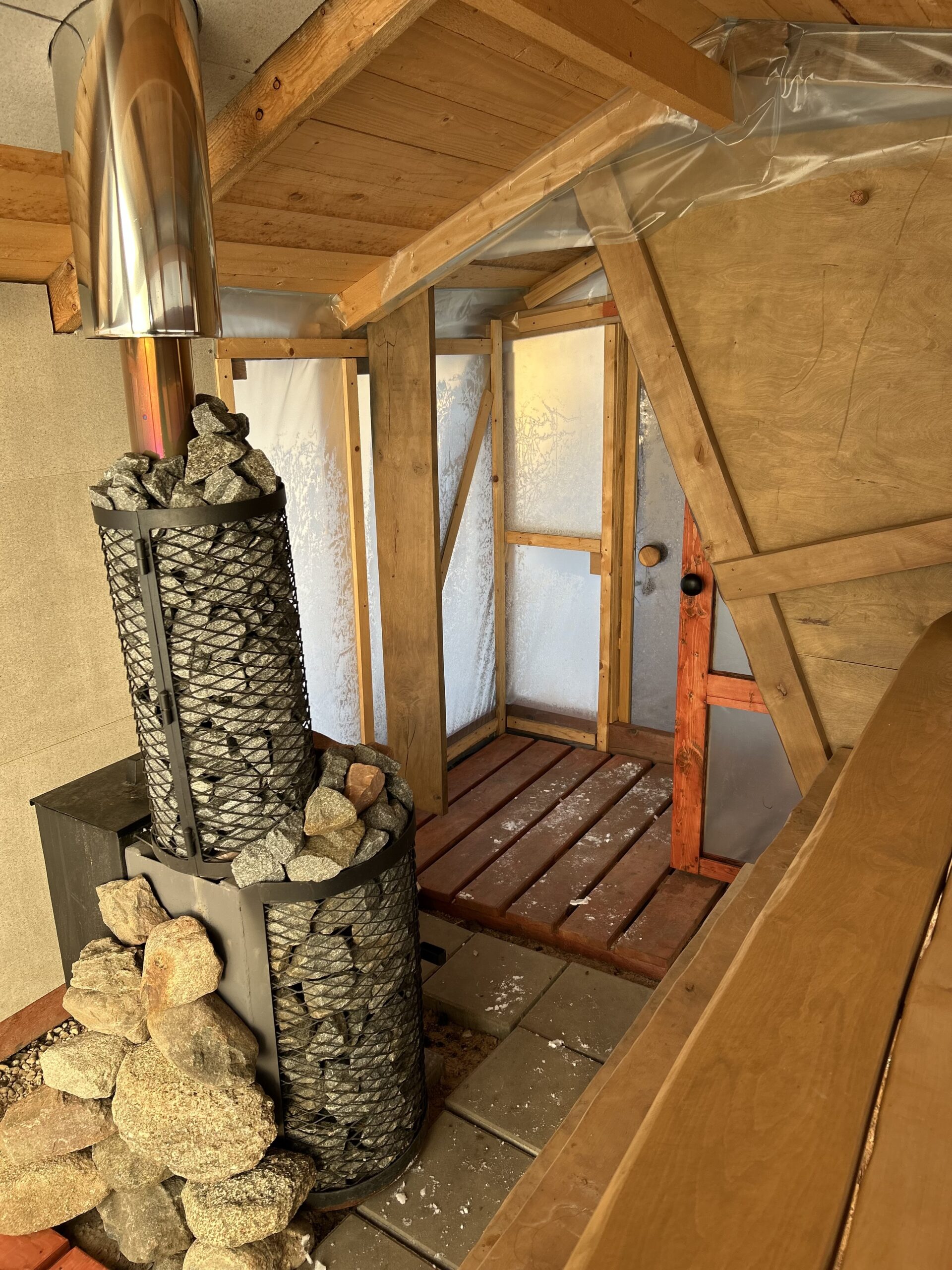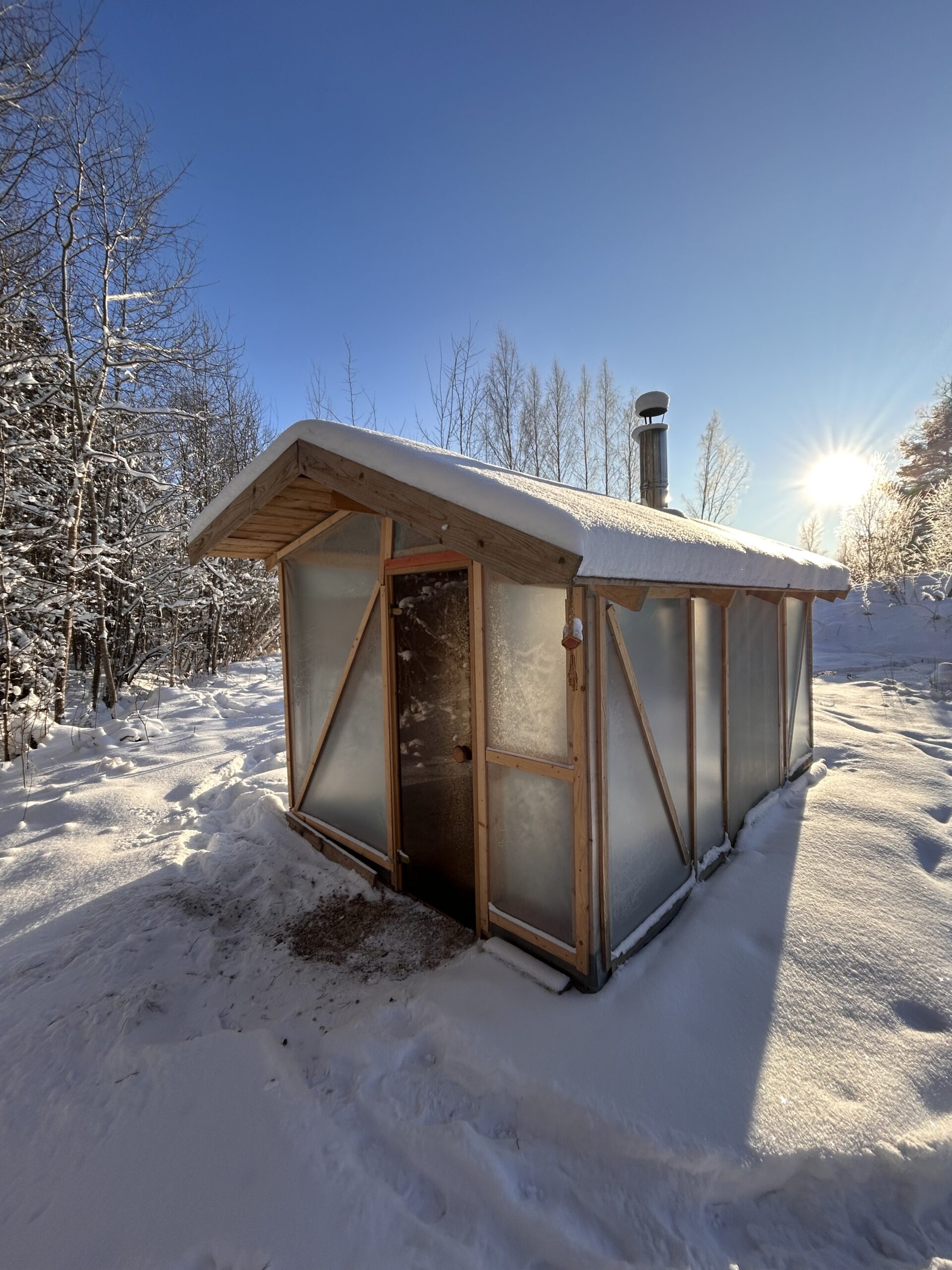 A greenhouse sauna heats up in about an hour and offers an authentic sauna experience.